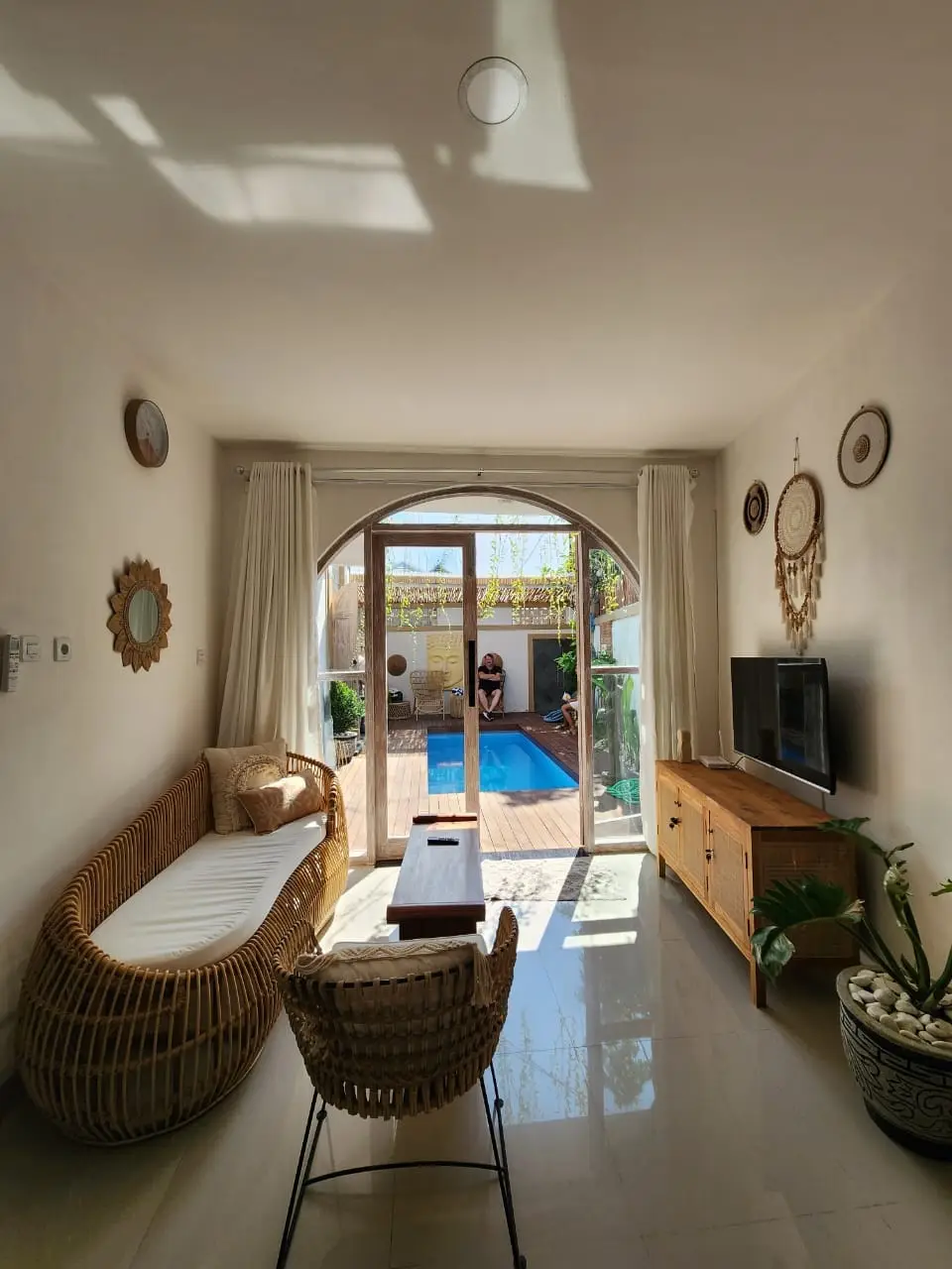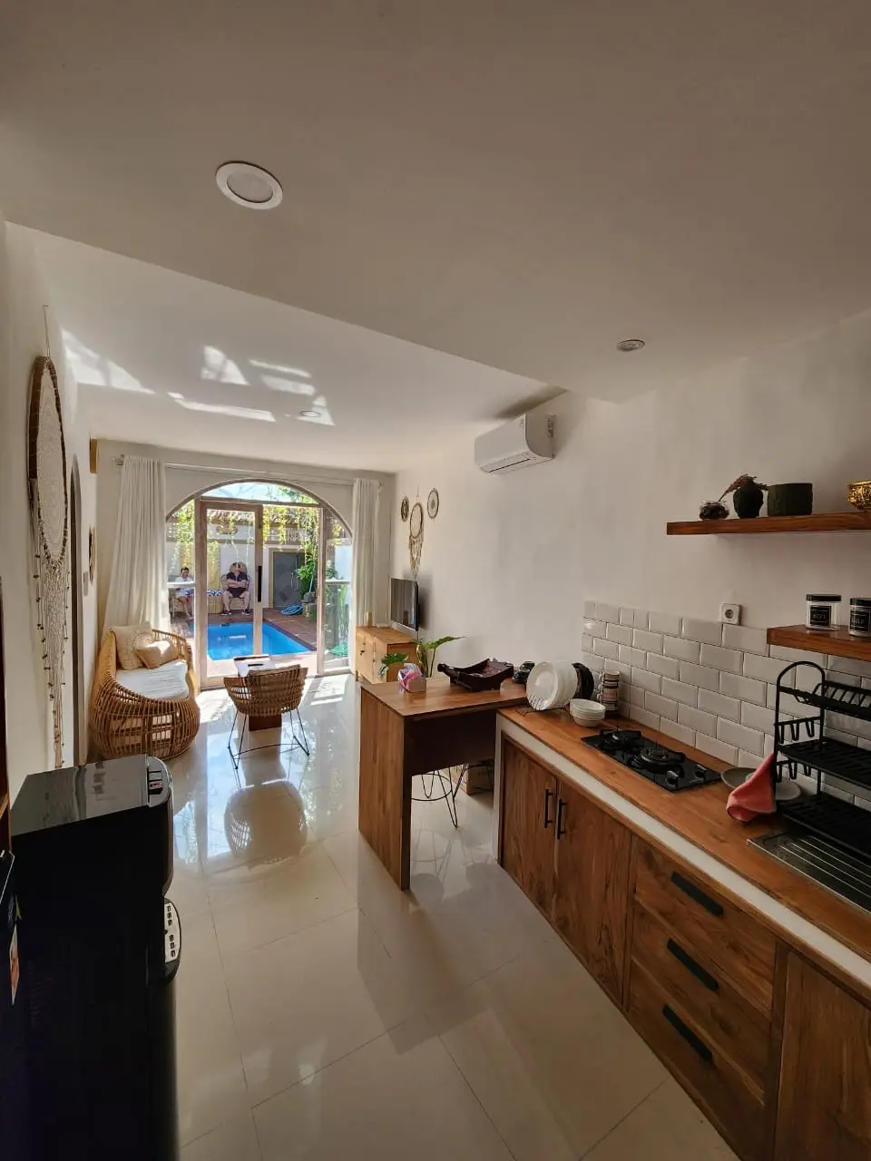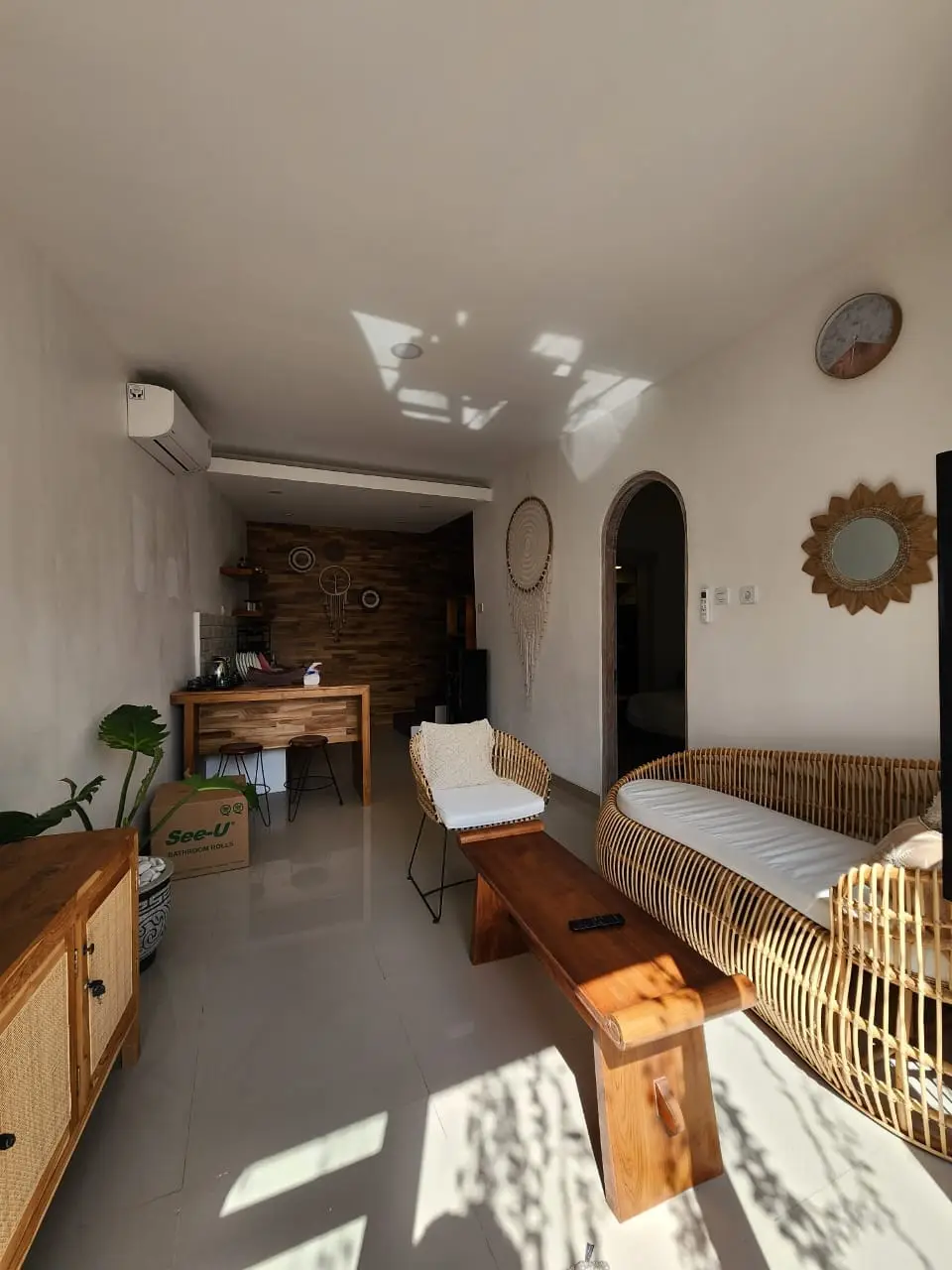 As you step inside, you’ll immediately notice the open-plan design, which enhances both space and comfort. Moreover, high ceilings and expansive glass doors allow natural light to flood the interior, creating a bright and refreshing ambiance. Additionally, the seamless indoor-outdoor connection makes it easy to enjoy Bali’s tropical beauty from every corner.