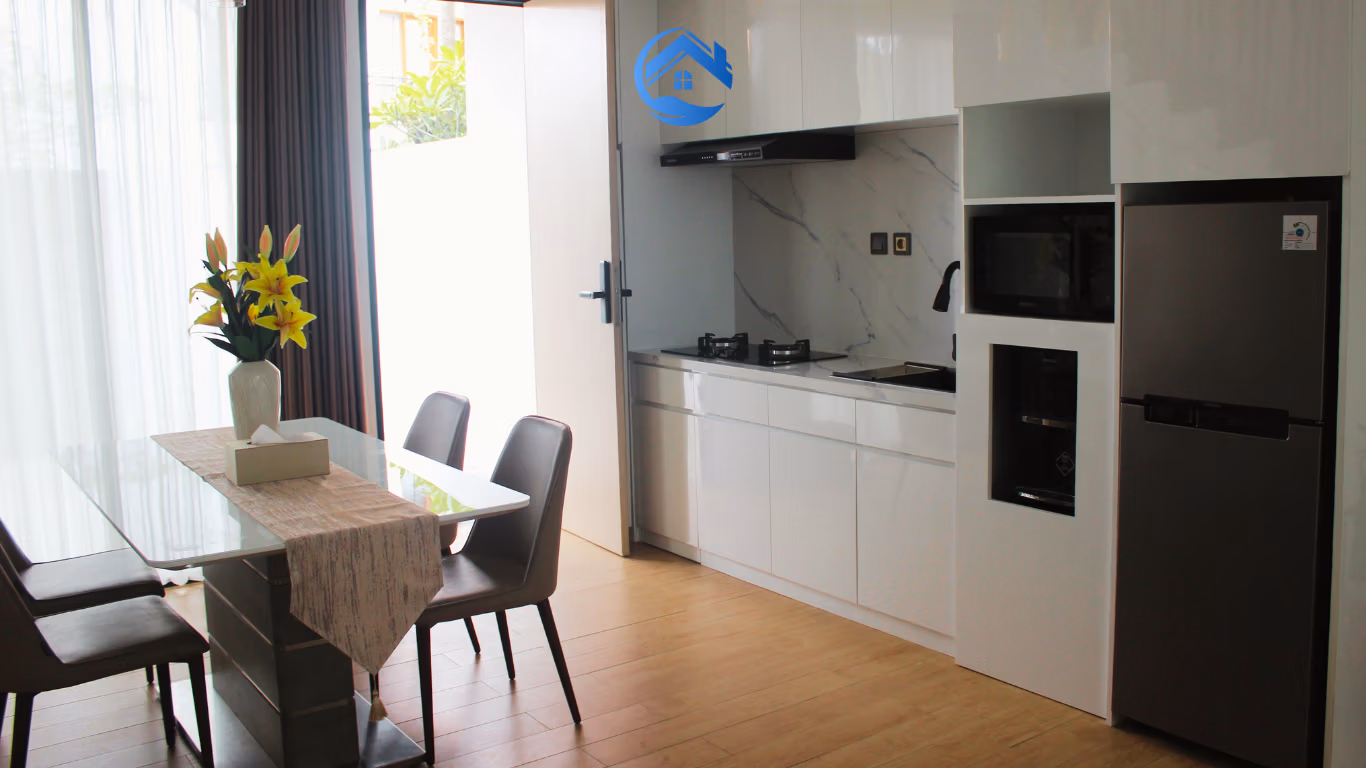 The living and dining areas flow seamlessly to a lush garden with a private 3 x 7-meter swimming pool. In addition, the villa comes fully furnished with quality furniture and appliances. As a result, it's ready for move-in or Airbnb rental from day one.