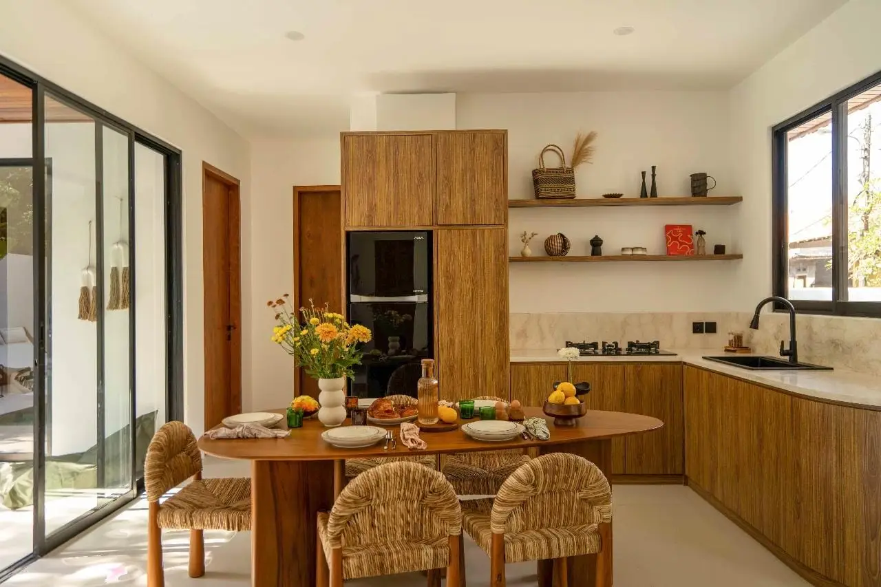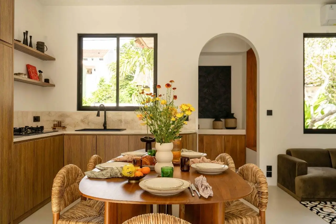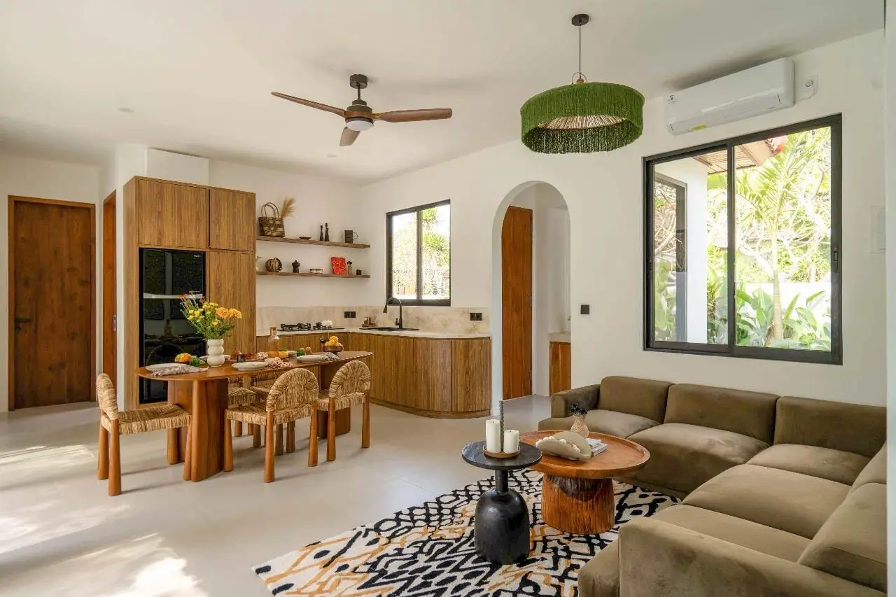Step inside and experience a beautifully designed open-concept layout. The spacious living area flows seamlessly into the stylish dining space and fully equipped modern kitchen, creating an ideal setting for entertaining or everyday living. Large windows invite natural light, enhancing the villa’s warm and welcoming atmosphere.