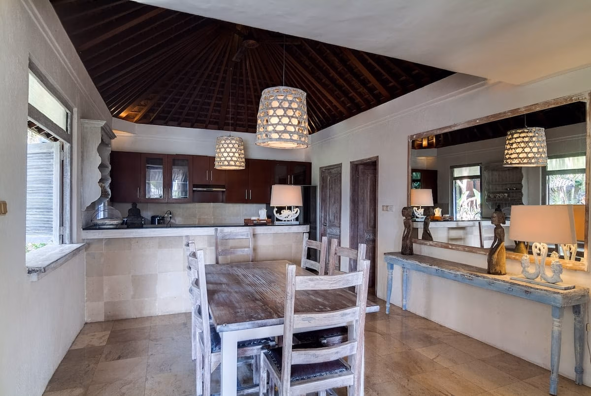 This beautiful villa near Berawa Beach offers a luxurious retreat set in a peaceful and serene environment, just a 5-minute drive from the shoreline. Surrounded by lush tropical gardens and overlooking expansive rice fields, the villa is designed for those who appreciate privacy, comfort, and natural beauty. It is perfect for a private residence, a holiday home, or a lucrative investment opportunity in Bali’s thriving property market.