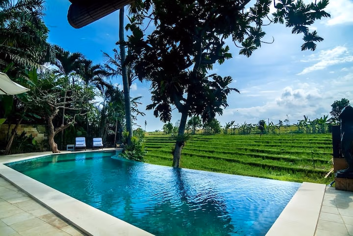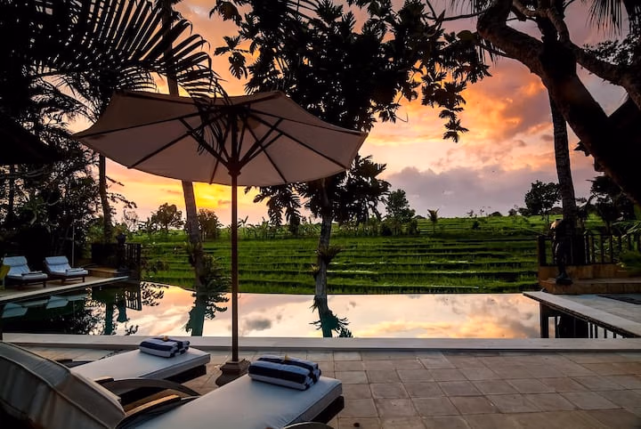 Enjoy stunning panoramic views over lush paddy fields, creating a peaceful and inspiring atmosphere. The villa is perfectly positioned to enjoy breathtaking sunsets every evening, enhancing the magical Bali experience.