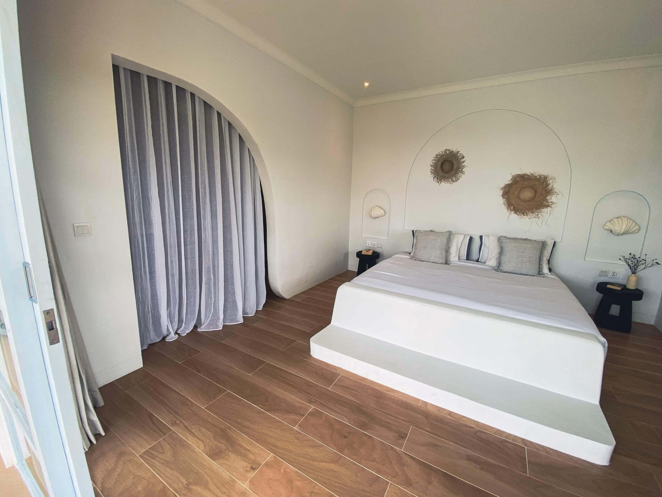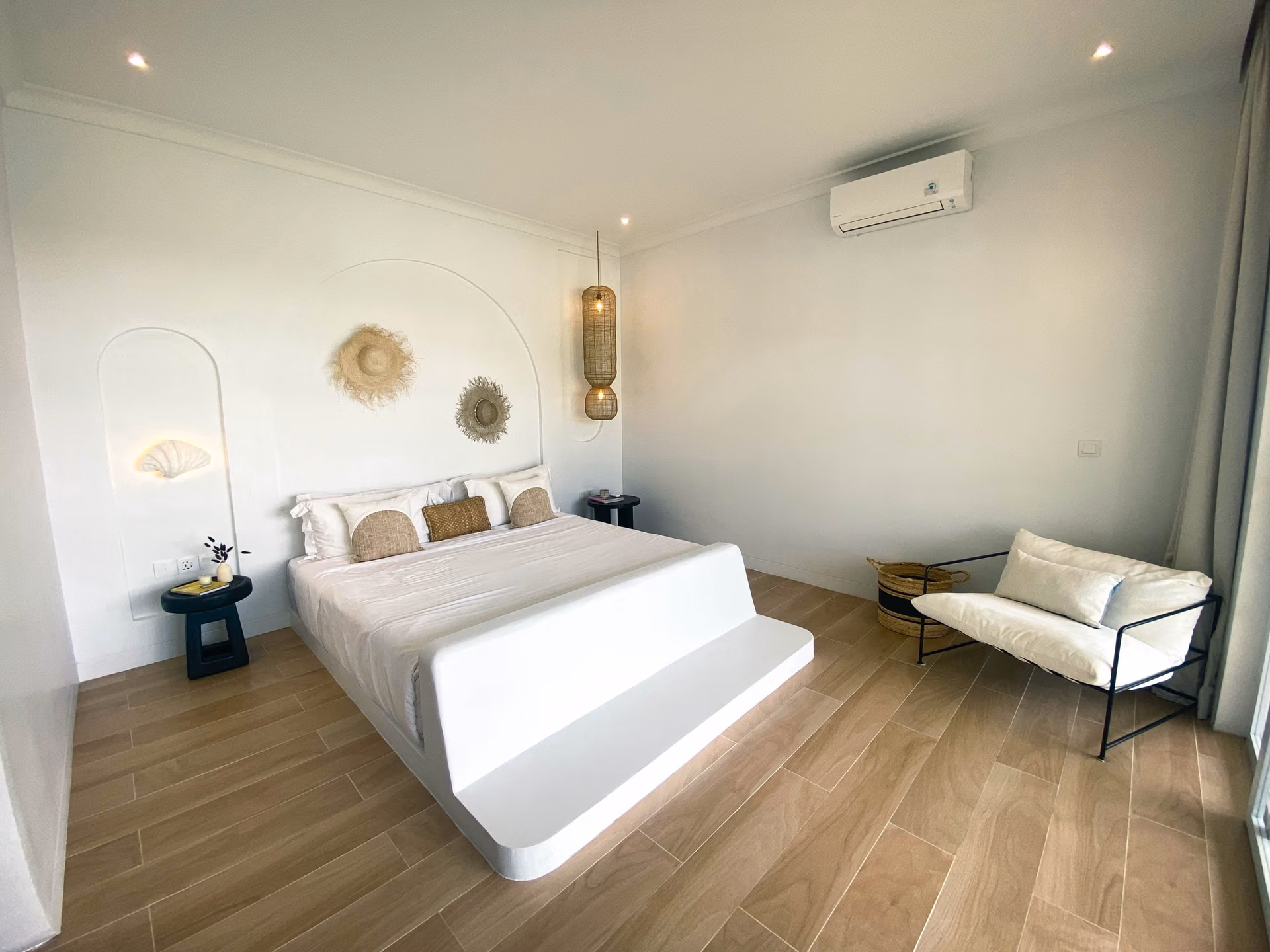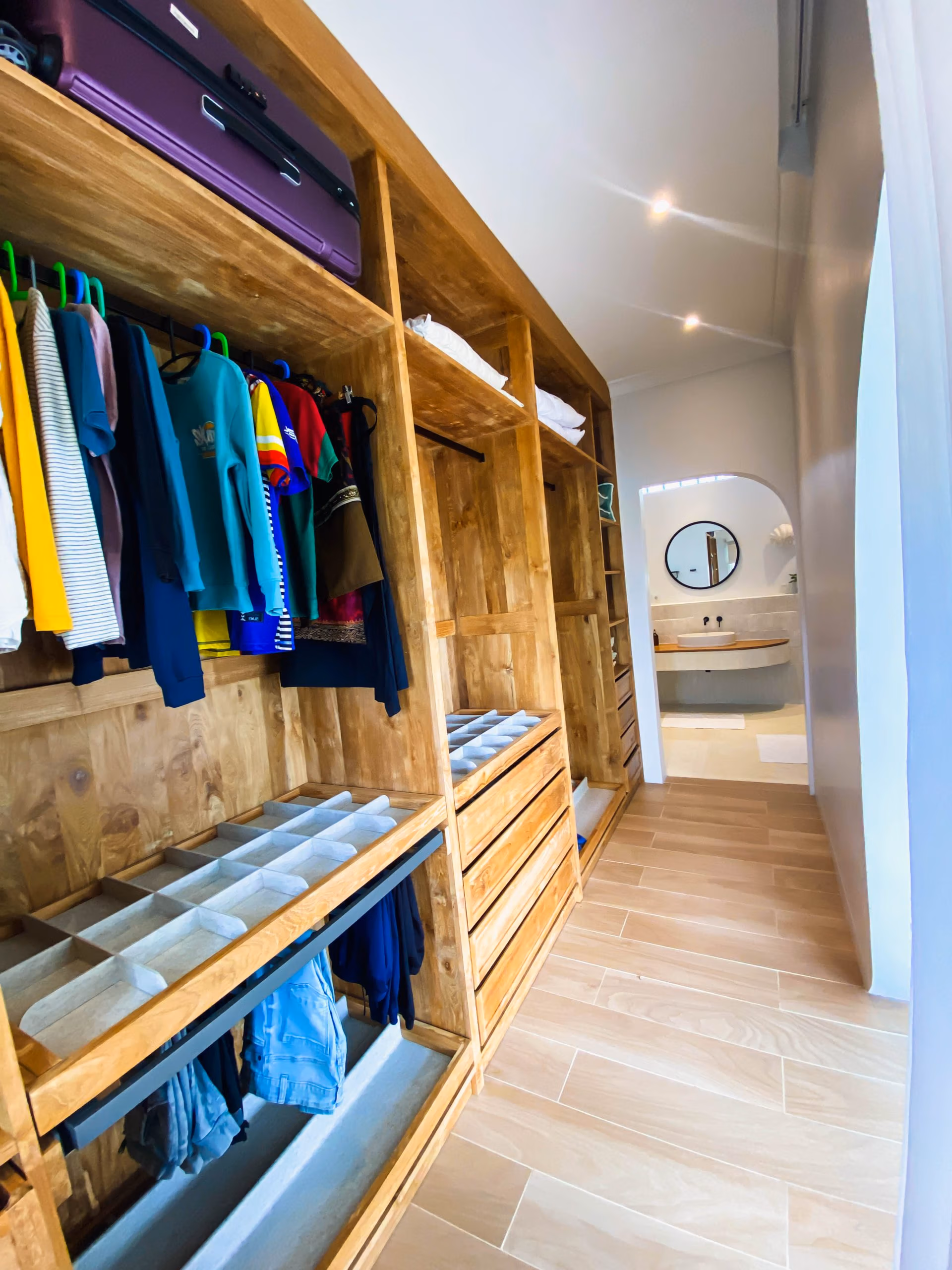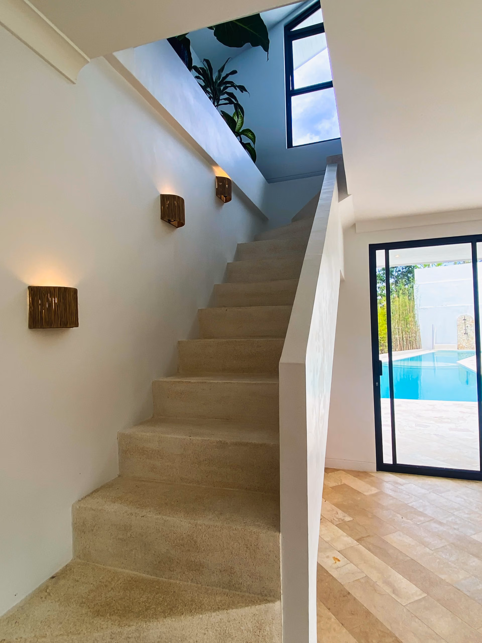 This villa blends modern elegance with tropical charm. The interiors feature high-quality teak wood accents and natural stone bathrooms, adding warmth and character to every room. Meanwhile, the 19-meter swimming pool sits at the heart of the property, surrounded by inviting lounge areas—perfect for relaxation or hosting guests.