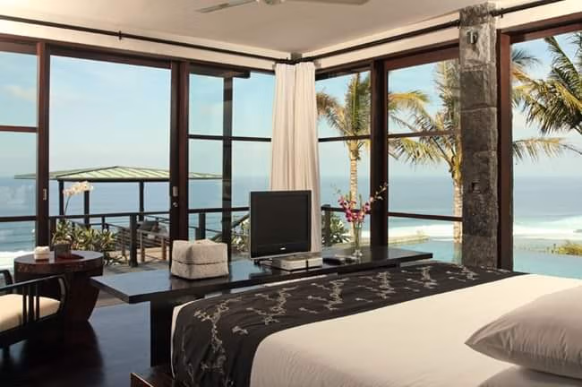 This stunning villa sits on a cliff in Bali’s elite Bukit Peninsula. It offers sweeping views of the Indian Ocean and unmatched tranquility. Renowned German architect Walter Wagner of Habitat 5 designed the villa with a modern yet timeless aesthetic. It has gained recognition in top design magazines and the Bali Living Book for its architecture and interiors.